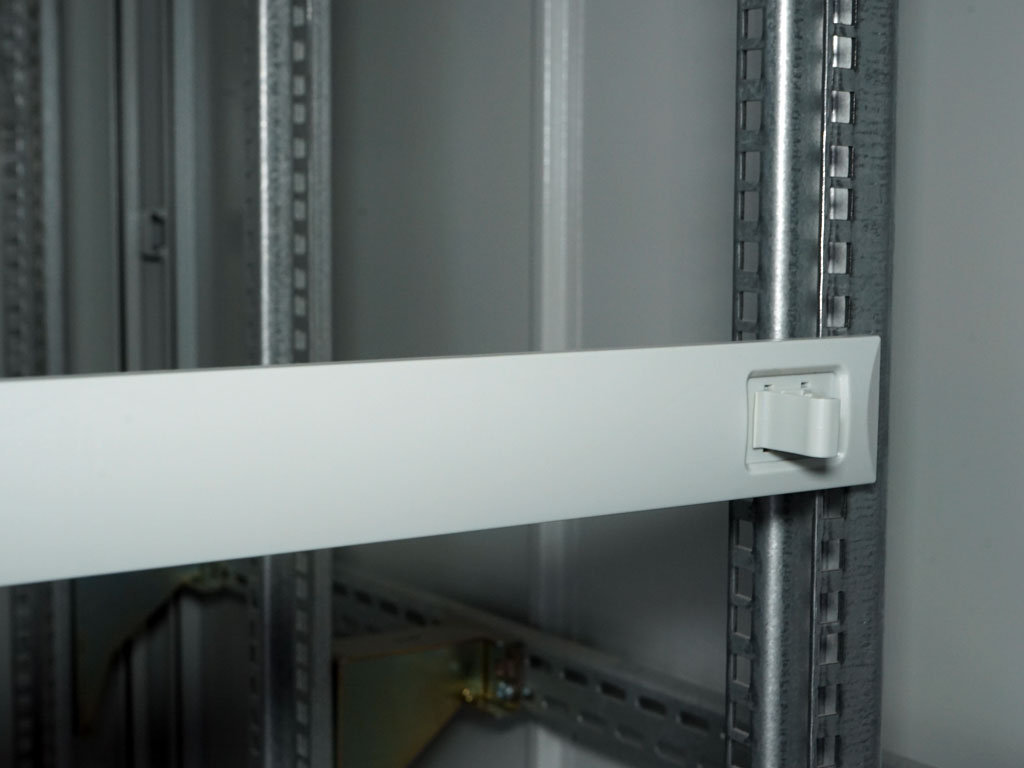 als Datenschrank für aktive und passive Netzwerktechnik geeignet- Standschrank 42 HE 800 x 800, Gesamthöhe 2003mm, geschraubtes Gestell, komplett zerlegbar- vorn Sichttür mit 6mm Sicherheitsglas, Stahlblechrahmen und Schwenkhebel mit 3-Punkt-Stangenverschluss, abschließbar mit Profilhalbzylinder (austauschbar)- Rücktür aus Stahlblech, mit 2 Punkt Verschluss, Rücktür gekürzt, mit 3HE Blende zur Kabeleinführung inkl.Bürstenleiste, variabel einsetzbar,- ohne Seitenwände- Boden offen, verschiedene Bodenbleche als Zubehör erhältlich- 19"-Profilschienen vorn und hinten tiefenverstellbar, Aluzink- 1 Erdungsschiene und Erdungsleitungen, komplett verdrahtet- 4 Nivelierfüsse beigepackt- Schrankrahmen 2mm Stahlblech, Wände 1mm Stahlblech- Oberfläche Schrank: pulverlackiert in ähnl. RAL 7035- Schrank ist vormontiert, anreihbar (Anreihverbinder als separates Zubehör erhältlich)