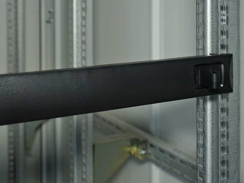 als Datenschrank für aktive und passive Netzwerktechnik geeignet- Standschrank 42 HE 800 x 800, Gesamthöhe 2003mm, geschraubtes Gestell, komplett zerlegbar- vorn Sichttür mit 6mm Sicherheitsglas, Stahlblechrahmen und Schwenkhebel mit 3-Punkt-Stangenverschluss, abschließbar mit Profilhalbzylinder (austauschbar)- Rücktür aus Stahlblech, mit 2 Punkt Verschluss, Rücktür gekürzt, mit 3HE Blende zur Kabeleinführung inkl.Bürstenleiste, variabel einsetzbar,- ohne Seitenwände- Boden offen, verschiedene Bodenbleche als Zubehör erhältlich- 19"-Profilschienen vorn und hinten tiefenverstellbar, Aluzink- 1 Erdungsschiene und Erdungsleitungen, komplett verdrahtet- 4 Nivelierfüsse beigepackt- Schrankrahmen 2mm Stahlblech, Wände 1mm Stahlblech- Oberfläche Schrank: pulverlackiert in ähnl. RAL 7035- Schrank ist vormontiert, anreihbar (Anreihverbinder als separates Zubehör erhältlich)