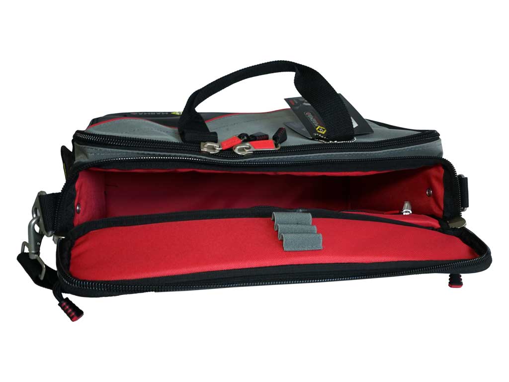 Stellen Sie sich Ihr eigenes Werkzeugset zusammen und verstauen die Werkzeuge sicher in dieser Werkzeugtasche!Diese vielseitig einsetzbare und robuste Werkzeugtasche mit 21 Fächern eignet sich zur sichern Unterbringung und zum Transport verschiedenster Werkzeuge und Verbrauchsmaterialien.